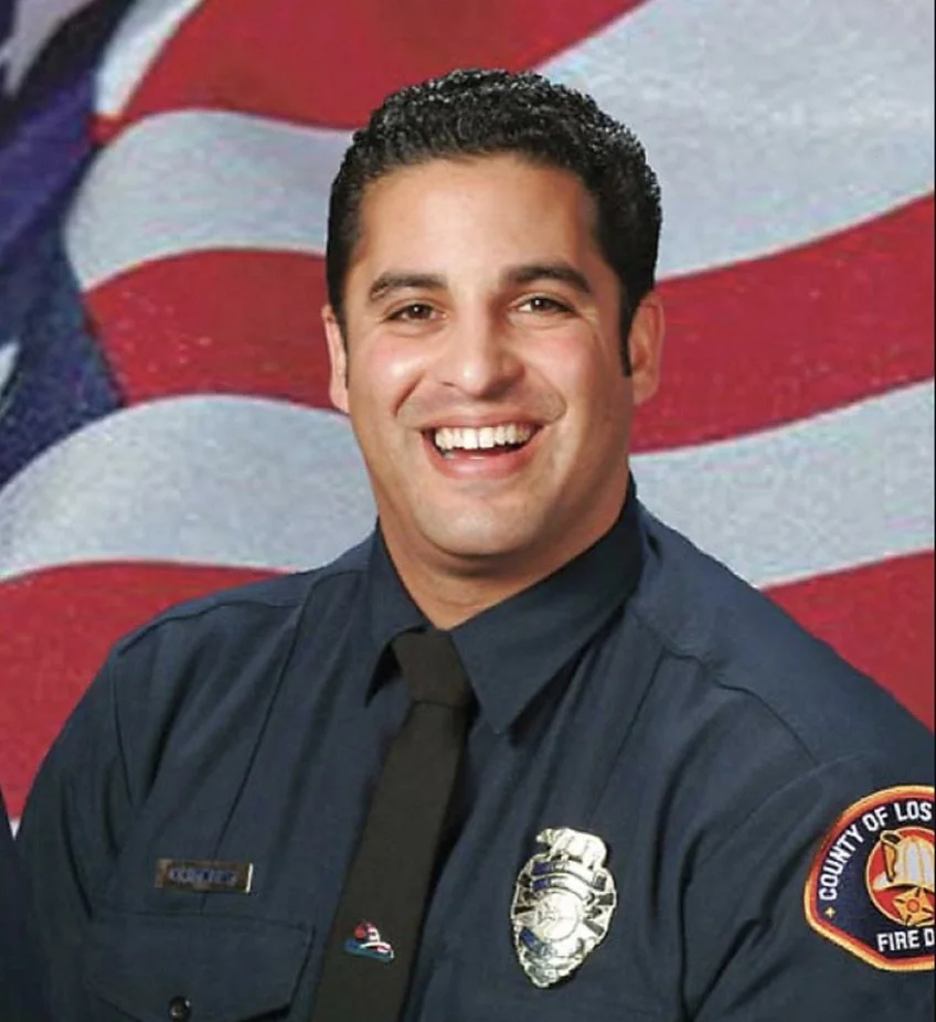 Los Angeles County Fire Fighter Specialist Arnaldo "Arnie" Quinones, 34, was killed in the line of duty on Sunday, August 30, 2009 during the Station Fire. His emergency response vehicle went over the side of the road and fell 800 feet into a steep canyon during fire suppression activities protecting Camp 16 outside the City of Palmdale, CA. He is survived by his wife Lori and daughter Sophia Grace, born three weeks after his death.