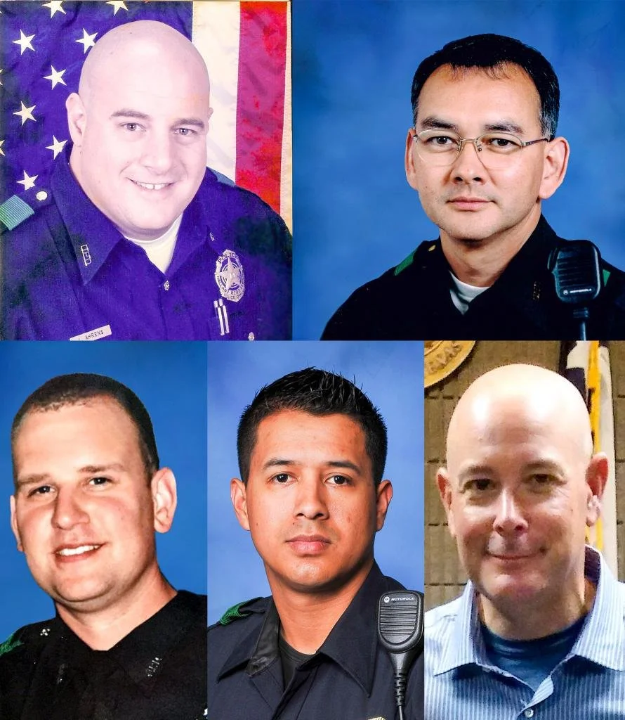 On July 7, 2016, a sniper coordinated an ambush on a group of police officers in Dallas, Texas. Dallas 5 commemorates the five officers who lost their lives in the attack.